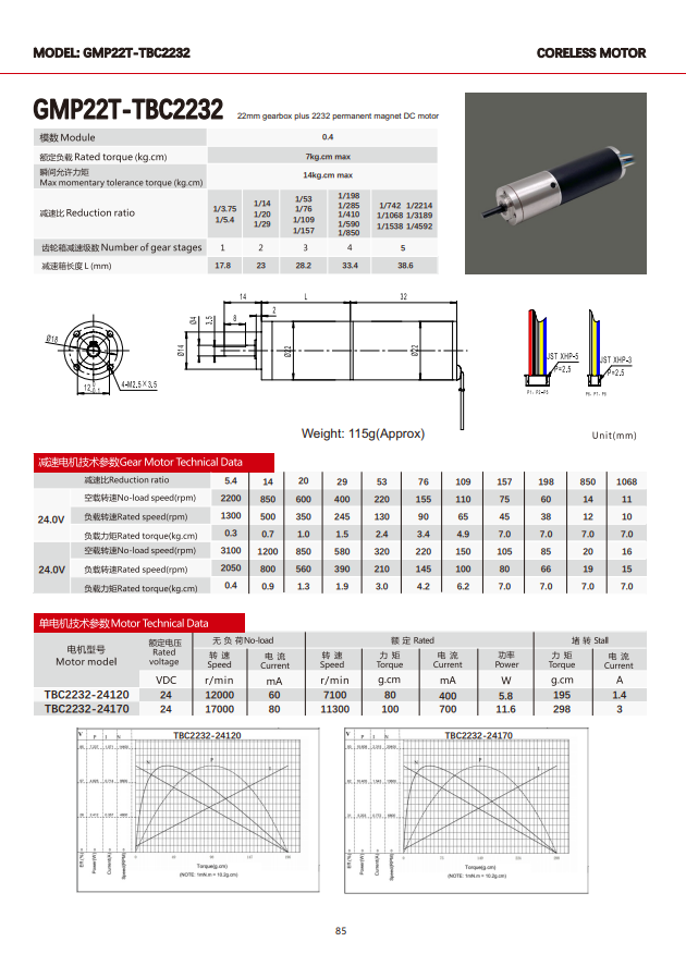 22mm ultra-small diameter, light weight, high power density, saves equipment space, especially suitable for portable medical tools (such as handheld ultrasound probes) or micro robot drive modules
