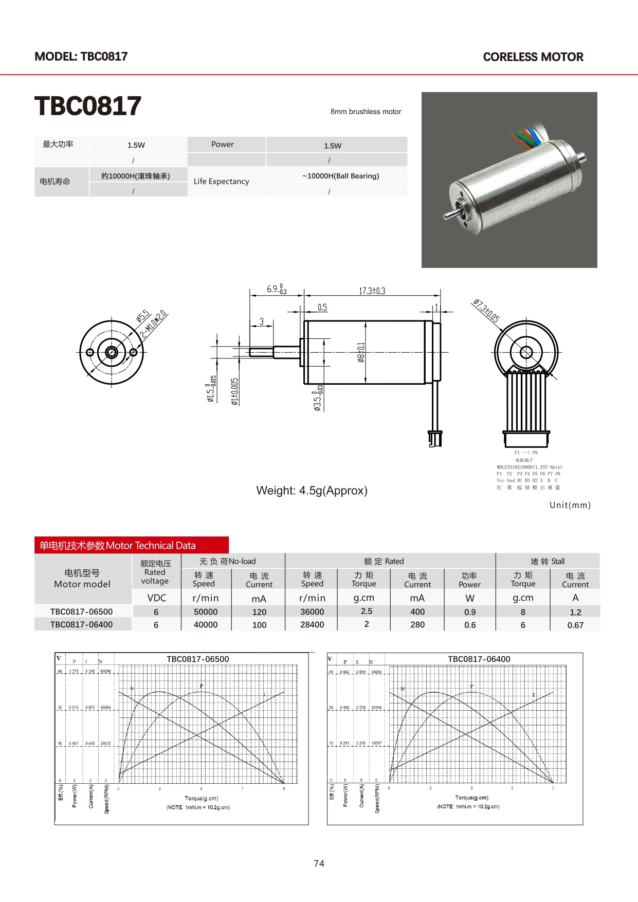 TBC0817 8mm Micro Brushless Coreless DC Motor Sensorless BLDC Coreless Motor 3V 5V for Miniature Pumps & Endoscopy