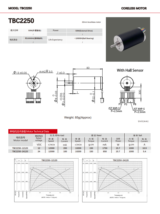 The diameter is only 22mm, the weight is is about 85g, which is suitable for space-constrained scenarios (such as micro robot finger joints, endoscope steering modules).
