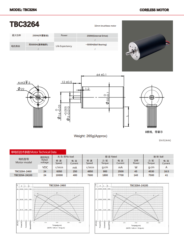 TBC3264 12V 24V 32mm Low Noise Long Life Permanent Magnet Micro BLDC Motor Electric Brushless DC Coreless Motor