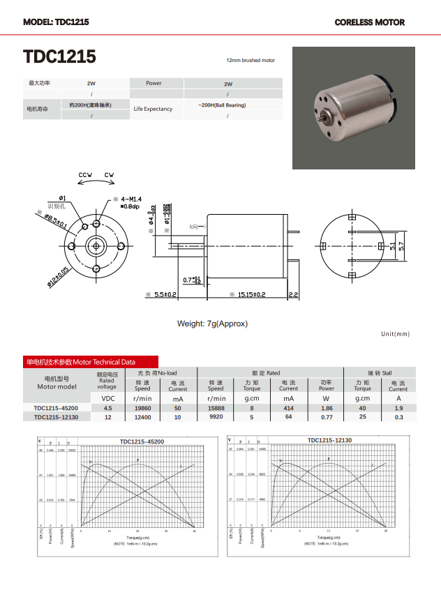 Ultra-compact size, weight is about 7g, high power density, suitable for extremely space-constrained scenarios (such as wearable devices, micro robot drive modules).